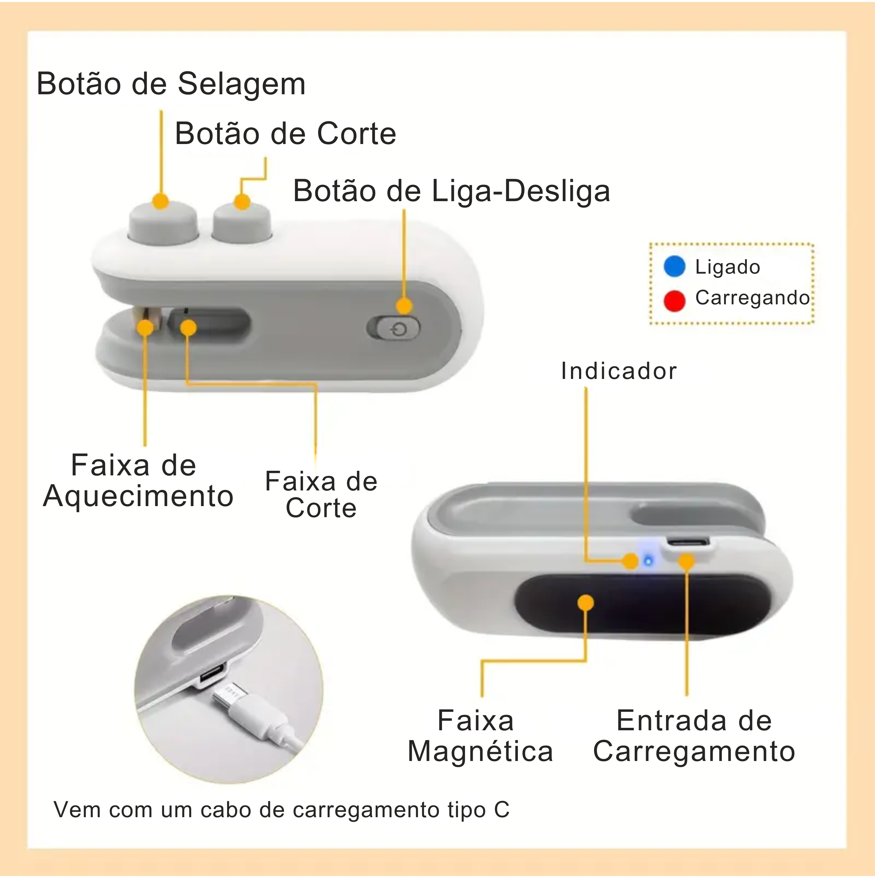 O SELAFRESH 3 EM 1 PORTÁTIL é a solução moderna para abrir e vedar pacotes de alimentos 🍪🍿 com rapidez e eficiência.